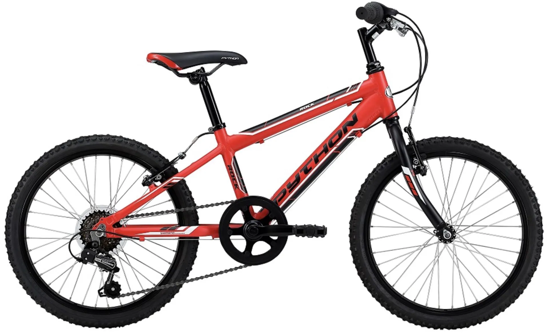 Frame: 6061 Alloy Junior FrameFork: Hi-Tensile ForkCranks: Alloy CranksBrakes: Alloy V BrakesShifters: Shimano EF-41 Fire Shifters.Wheelset: Alloy Rims, Steel Hubs, 18-InchStem: Steel Quill StemHandlebars: Riser HandlebarSaddle: Python Junior SaddleStabilisers: Not Included